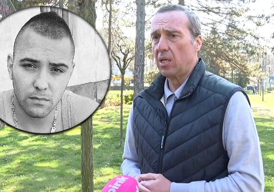 Pevač je usnimljen u Brestaču, vidno skrhan bolom zbog gubitka, porodica mu pruža podršku